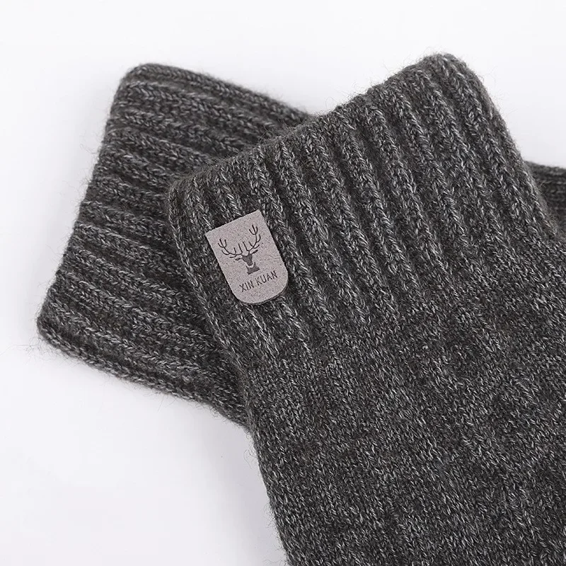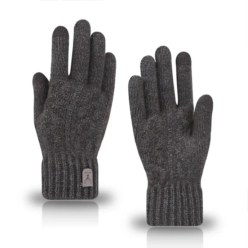 New Men'S Warm Gloves for Winter Touch Screen plus Velvet Thickened Cold-Proof and Warm Wool Knitted Gloves